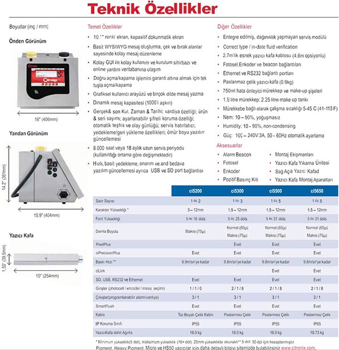 Citronix Ci Serisi; ink-jet
